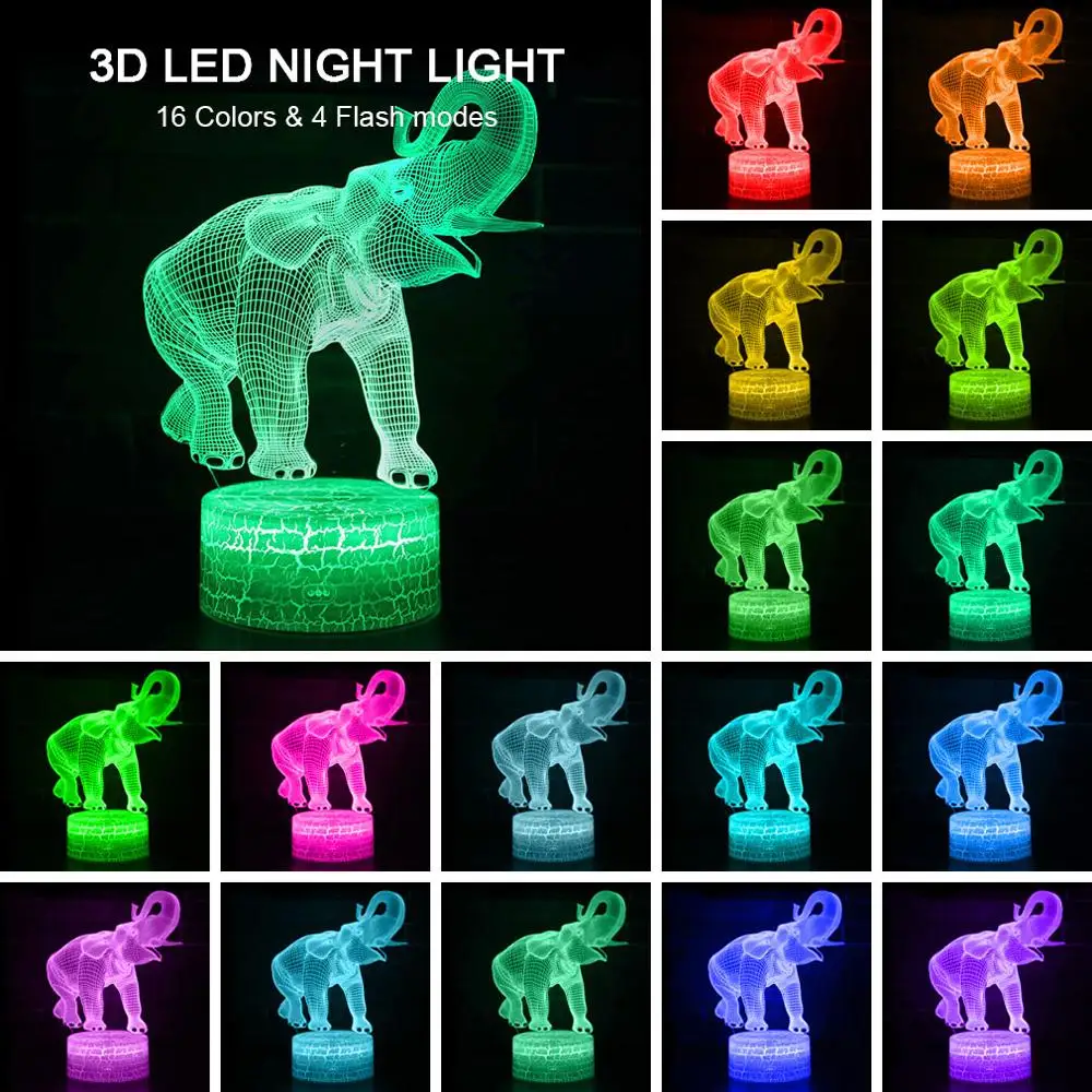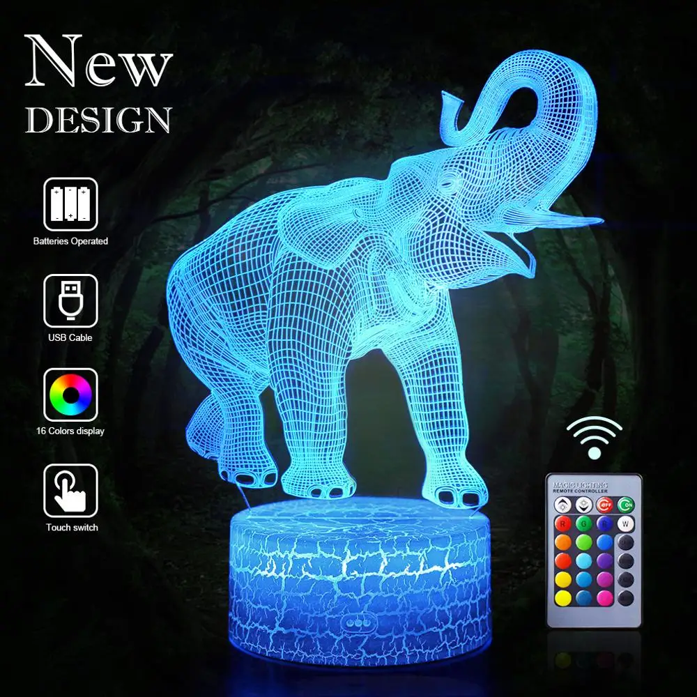 Светодиодный ночник с 3d-изображением слона, настольная лампа с дистанционным управлением в виде животных, настольный RGB светильник льник, рождественский подарок для девушки, украшение для спальни, детская игрушка