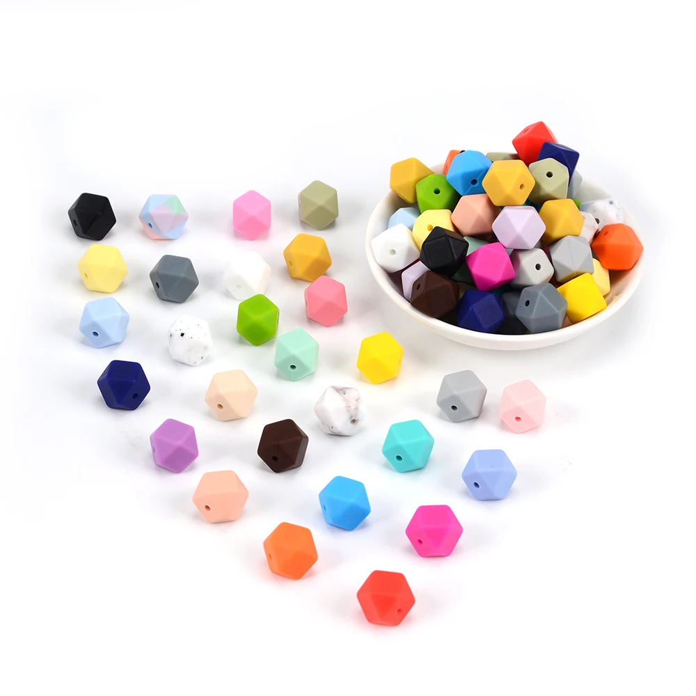 Миниатюрные шестигранные бусины из пищевого силикона LOFCA, 14 мм, Детские Прорезыватели для зубов, игрушки для прорезывания зубов, не содержит бисфенола А, для кормления, соска-подвеска, 10 шт.