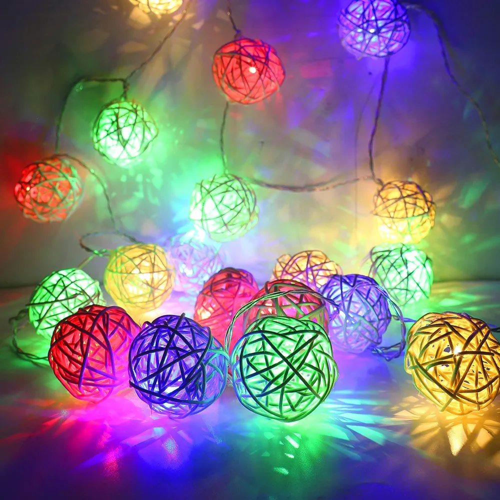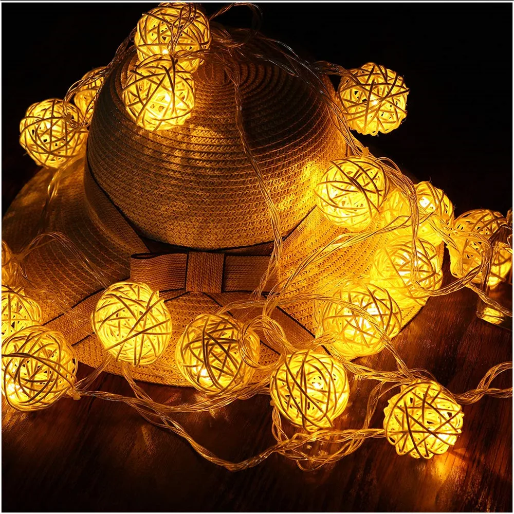 Светодиодная гирлянда с ротанговыми шариками, Рождественская гирлян...