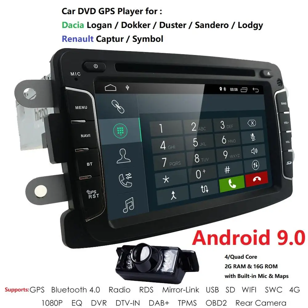 Автомагнитола 2 Din, Android 9, для DaciaSanderoDusterRenaultCapturLadaXray 2Logan2, автомобильный мультимедийный видеоплеер, GPS, DVR