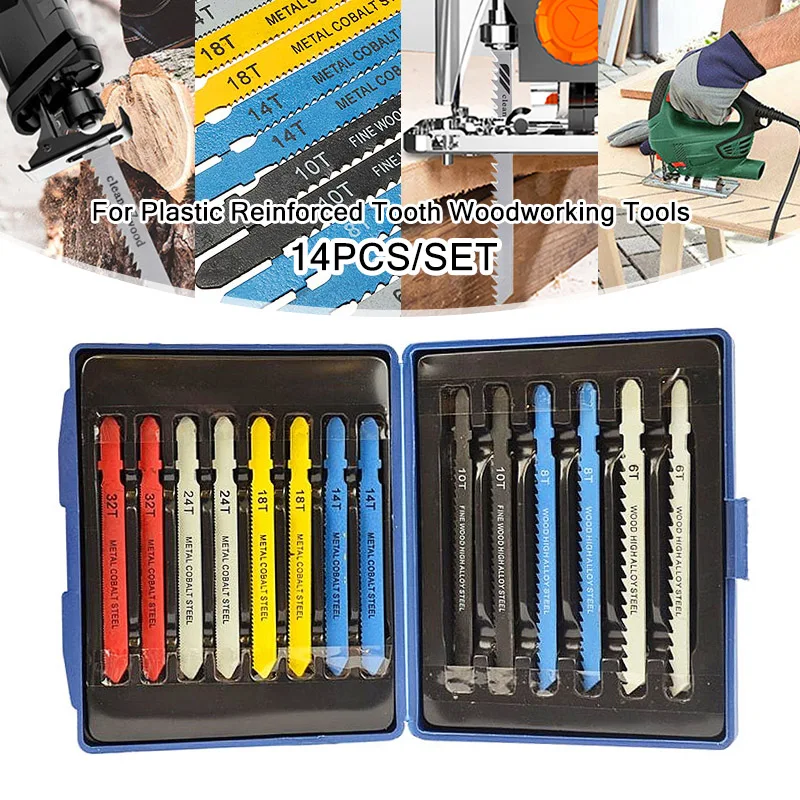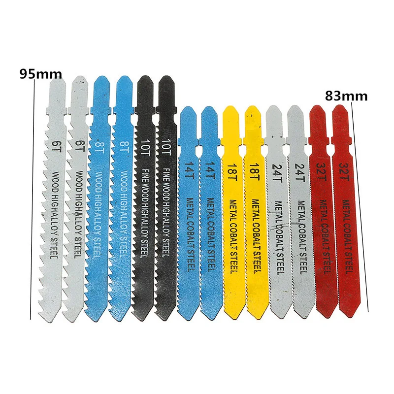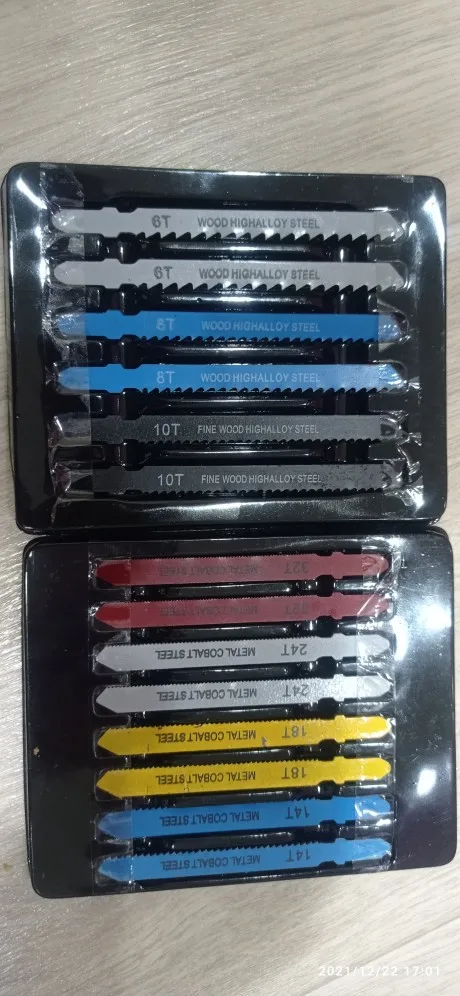 Технические характеристикиМатериал: металлическая кобальтовая стальРазмеры: 6, 8, 10, 14, 18, 24, 32 ЗубьевТип: пилыТип: лобзикПодходит для: резки дерева, ПВХ, пластика, алюминия, листовых металловОсобенности-Усиленная конструкция зуба для более быстрой резки и долгой жизни-Содержит самые популярные лезвия-Кобальтовые стальные зубья для большей прочностиУпаковка входит в комплект14 x Т-хвостовик Ассорти лобзик лезвие