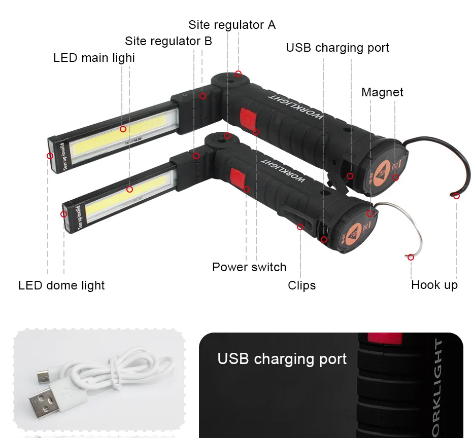 Портативный светильник COB с 5 режимами работы, USB-зарядка, магнитный промышленный светильник для увеличения, светильник для гаража, мастерской ing B2