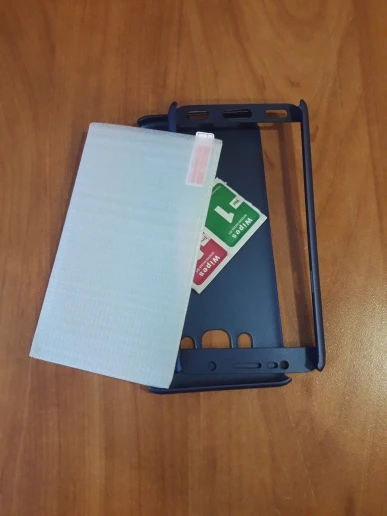 верхняя крышка слишком неудобна, закрывает большую часть экрана. в остальном все хорошо и защитное стекло в комплекте имеется.