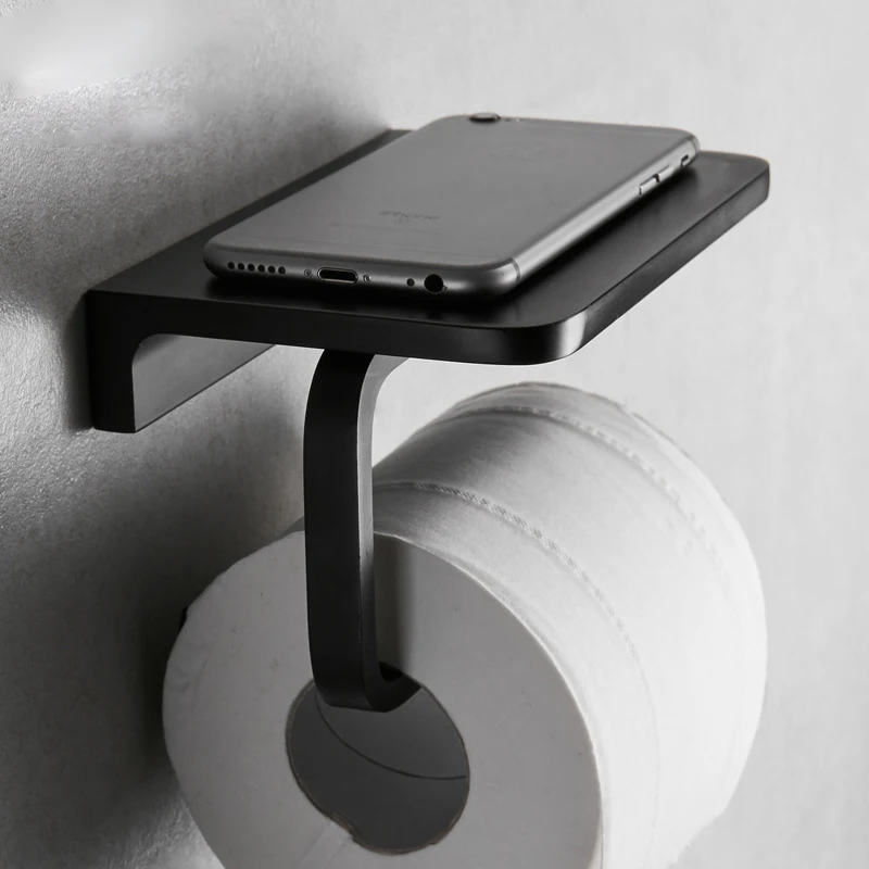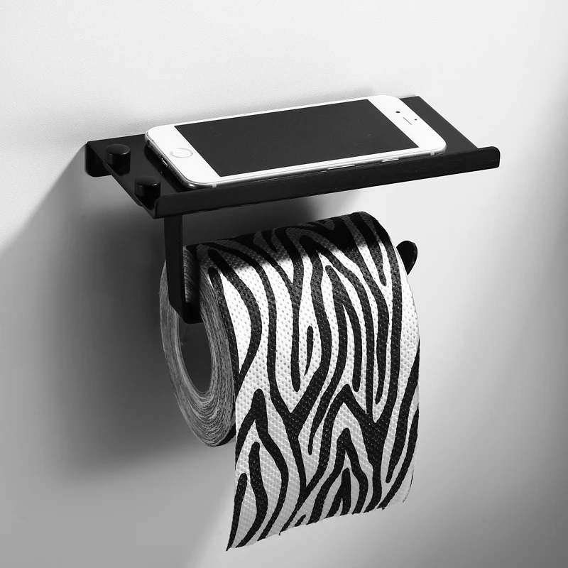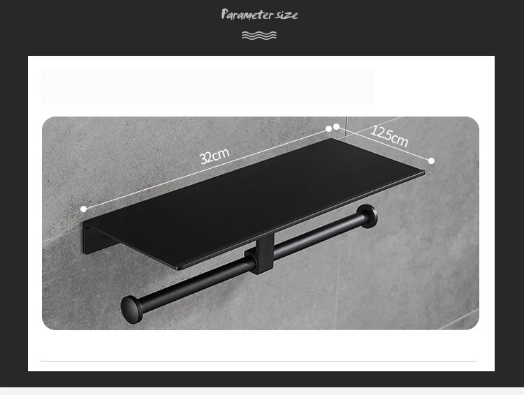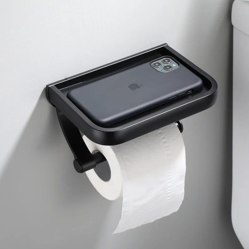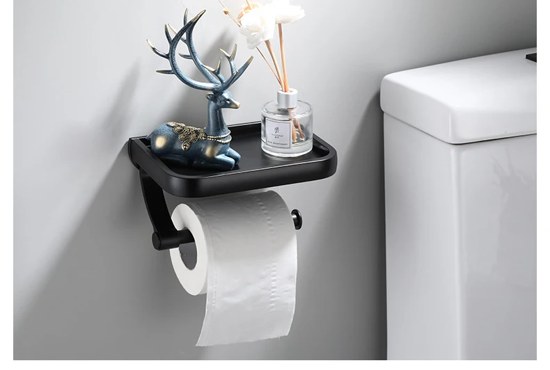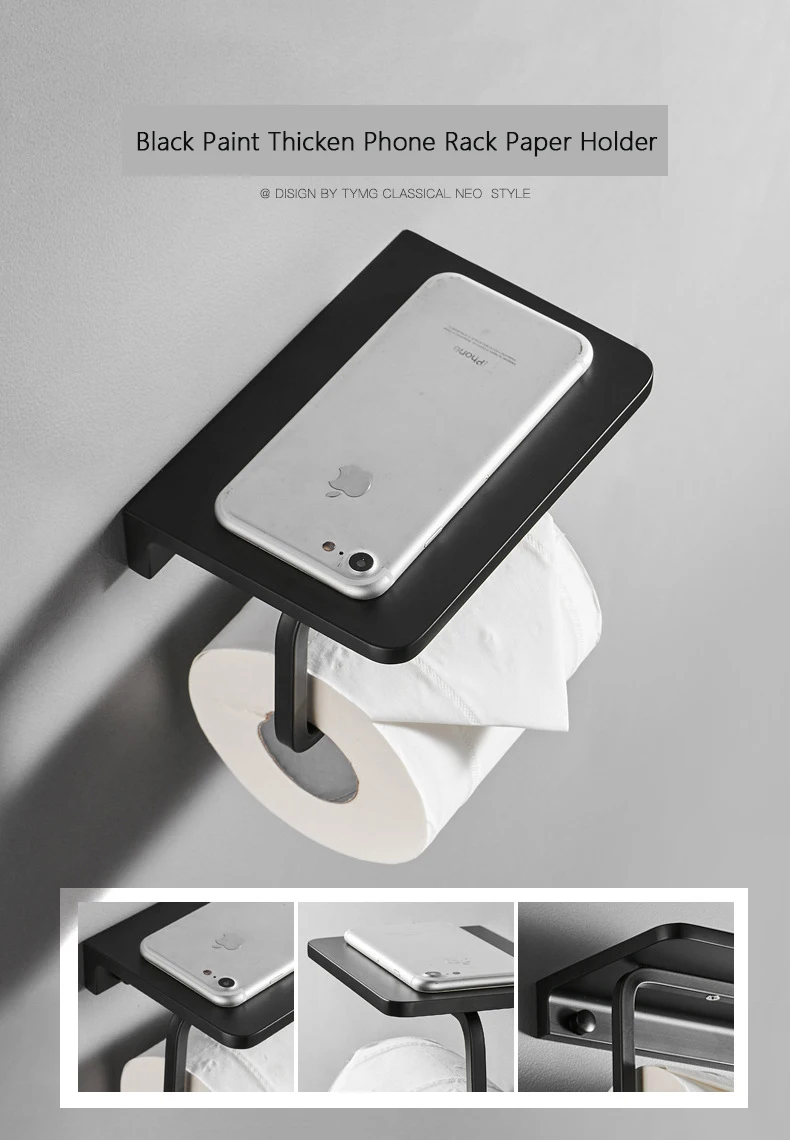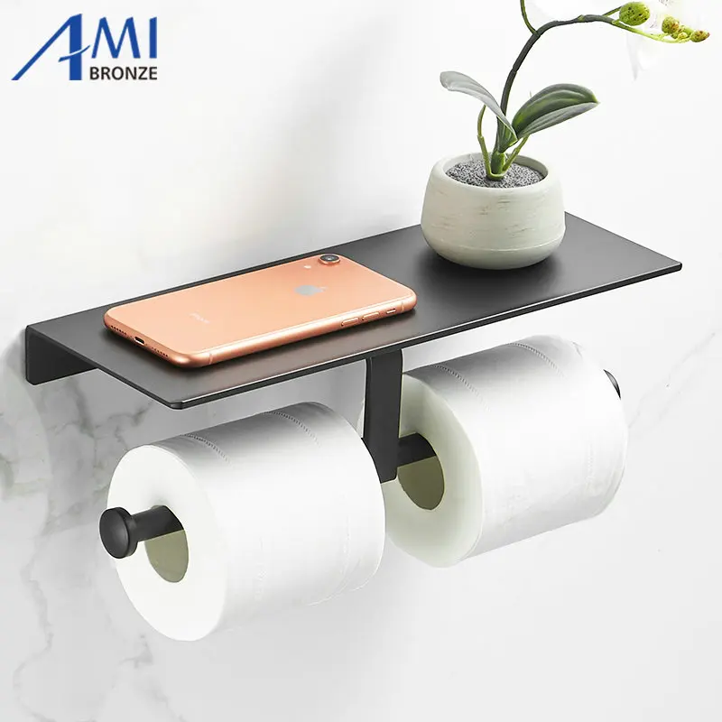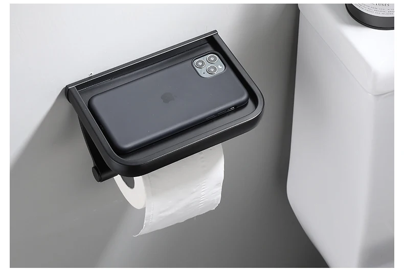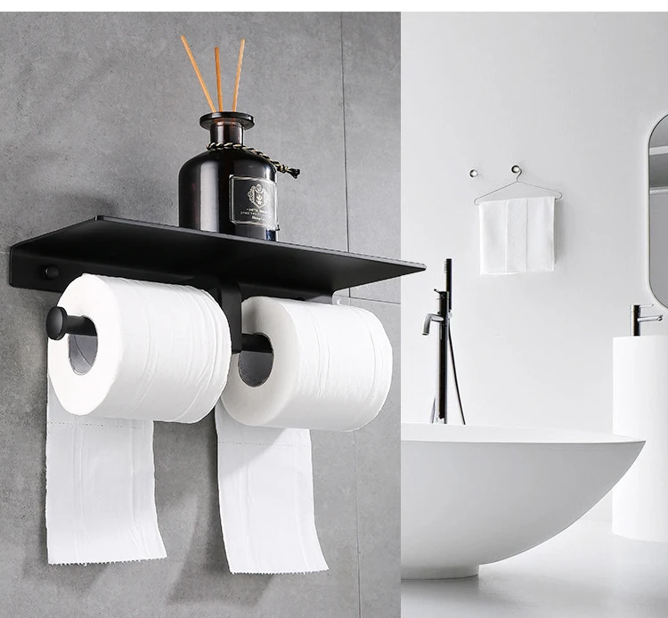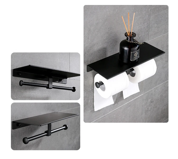 Двойной держатель для бумаги, черного цвета, настенные аксессуары для ванной комнаты, стойка для телефона, полка для унитаза, алюминиевый материал