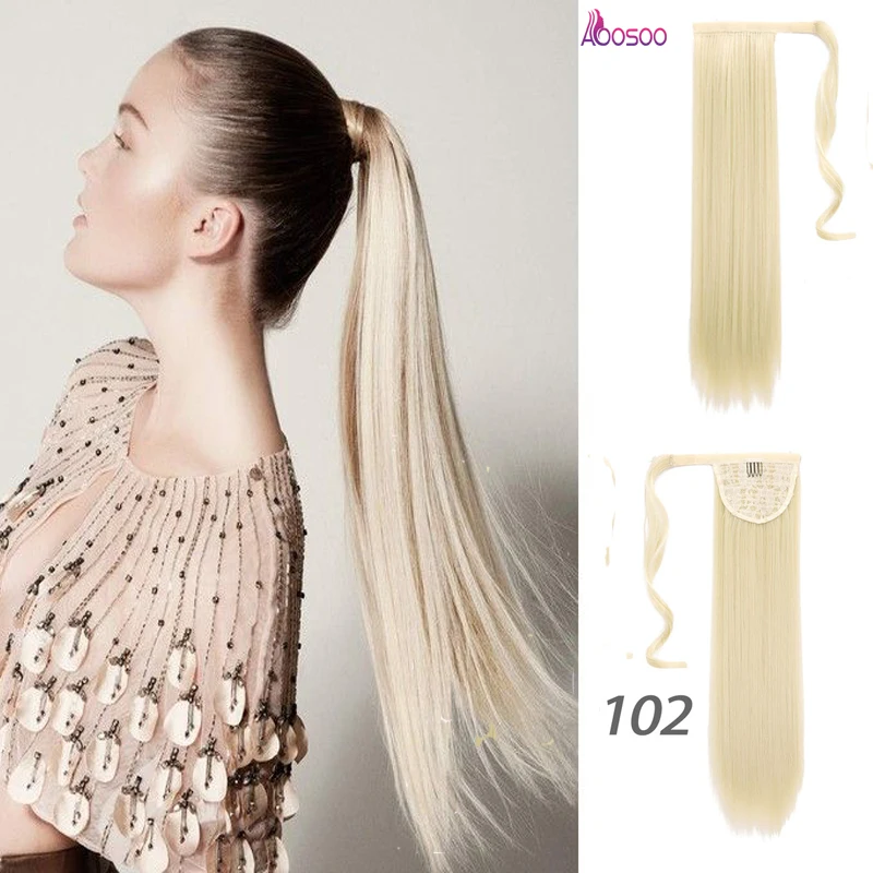 Синтетические прямые хвостики для женщин, длина 24 дюйма, натуральные накладные волосы на заколках, накладные волосы блонд