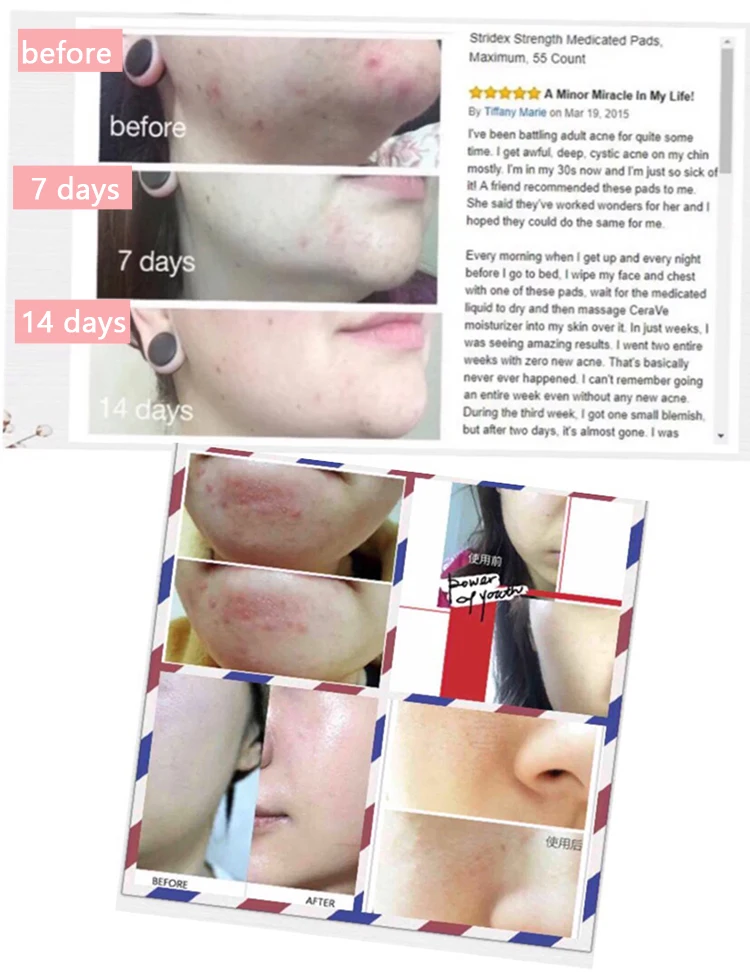 Формулы Stridex pad полностью не содержат спирта, поэтому вы получаете доказанную эффективность борьбы с акне без ожога.