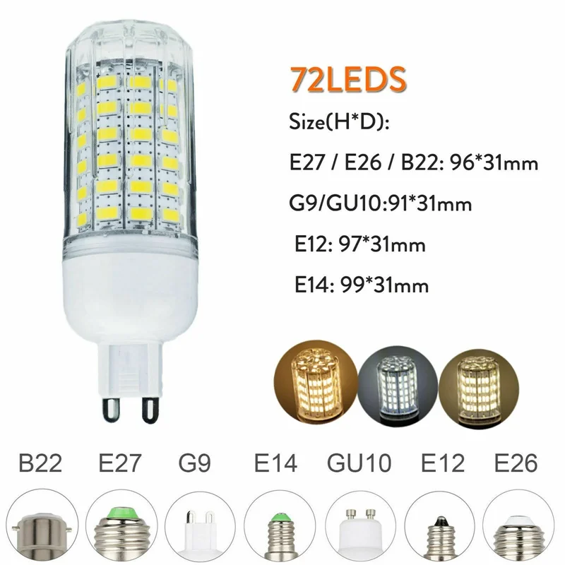 Светодиодная лампа E27 E14 E12, светодиодная лампочка SMD 5730, лампочка-кукуруза 24 36 48 56 69 72, светодиодсветодиодный люстра, свеча, светильник щение для украшения дома, ампула