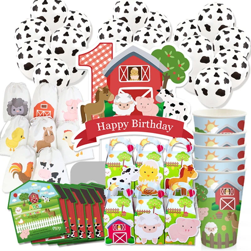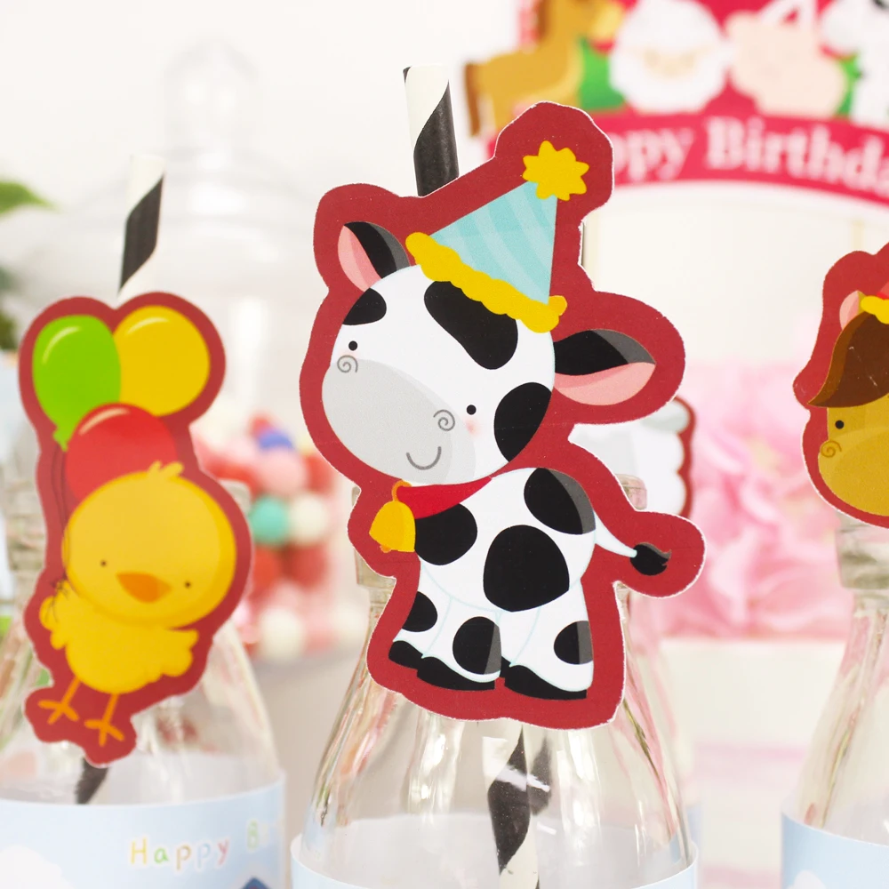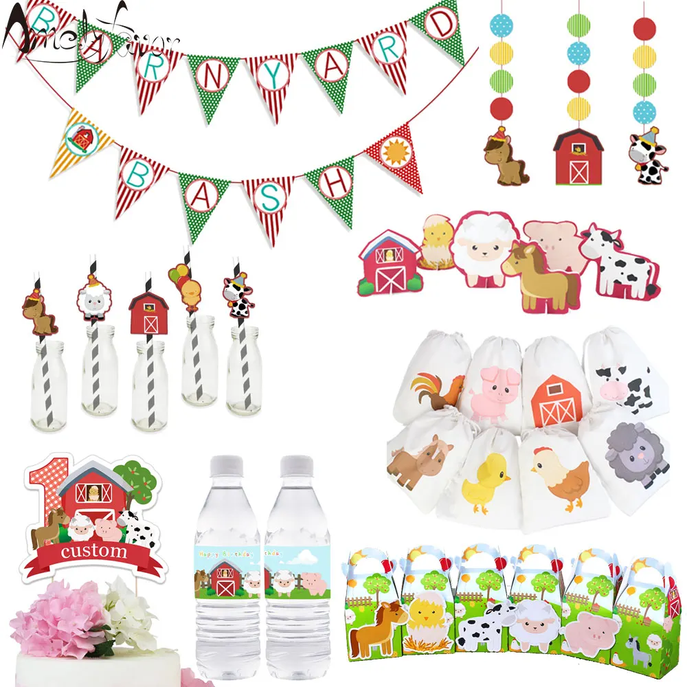 Ферма животные принадлежности для тематической вечеринки коробка приглашение потолок подвесные соломинки Сумки Торт Топпер бутылка этикетка баннер украшение для вечеринки