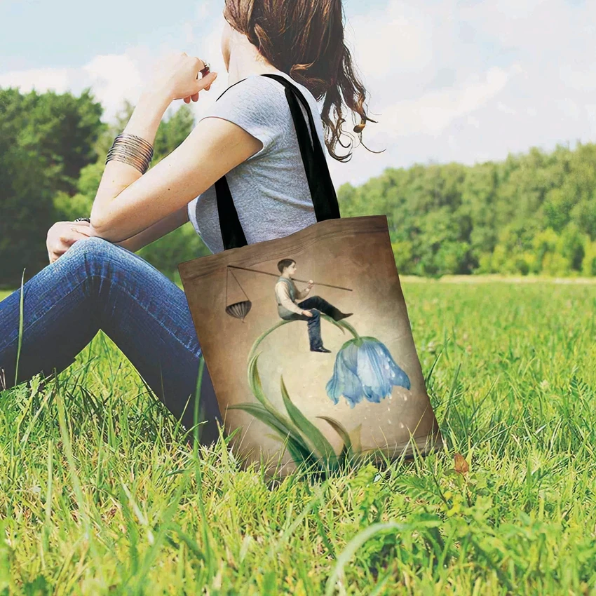 Женская сумка через плечо с принтом Dream Girl, повседневная сумка-тоут из льняной ткани, Модная складная сумка для покупок, пляжная сумка для улицы