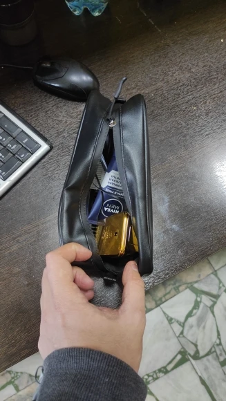 Крутая сумка, самым главным для меня это была вместительность, в моем случае, зубная щетка (на фотках ее нет, но она поместится), станок для бритья, ножницы, дезик, пена для бритья, и ещё один не большой флакон, при желании можно взять маленькую пену для бритья и ещё шампунь, и все поместится. Я доволен!!!