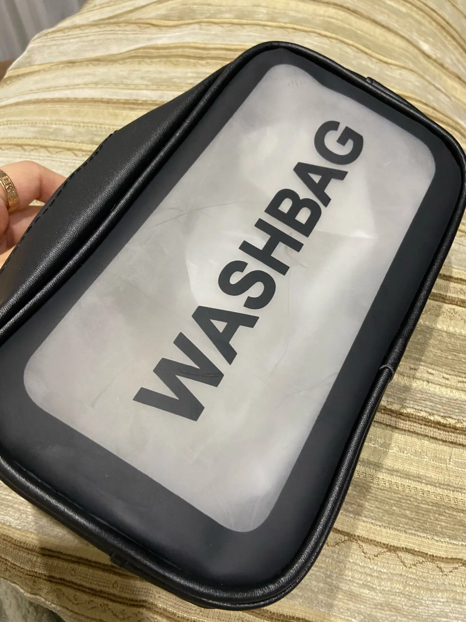 Удобная сумка, как раз под мои мыльно-рыльные. Сшито всё аккуратно, материал мягкий, никакого запаха. Меня всё устраивает.