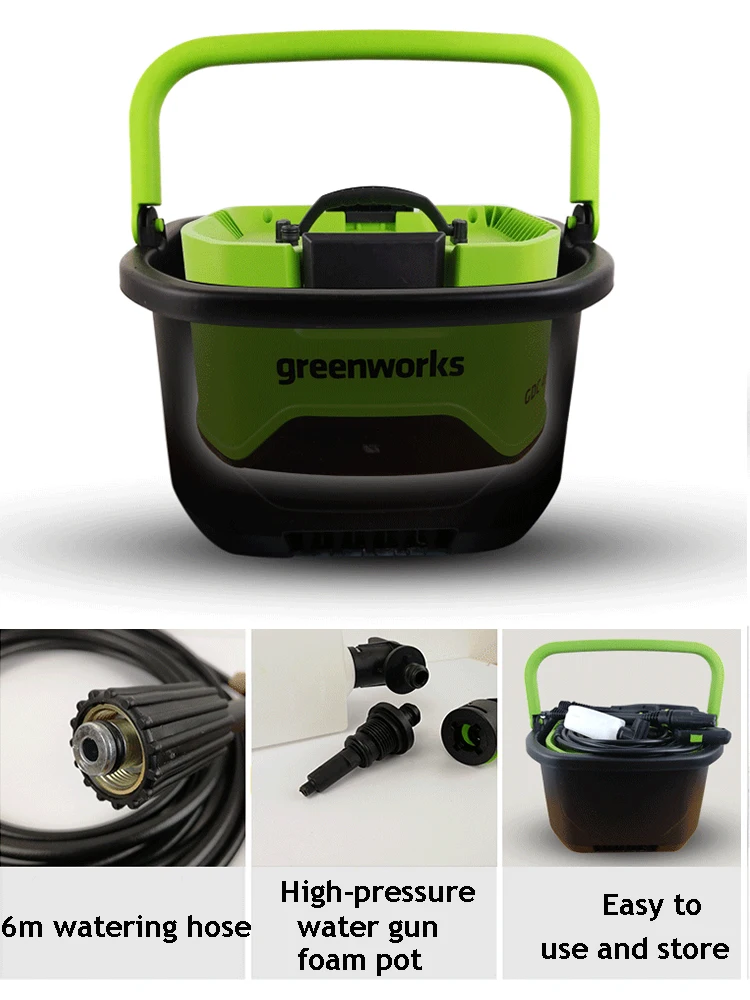 GREENWORKS 5104507 GDC40 Портативная Беспроводная электрическая мойка высокого давления 650 Вт 40 в, многофункциональная зеленая мойка для автомобиля, лодки, палубы и т. Д.