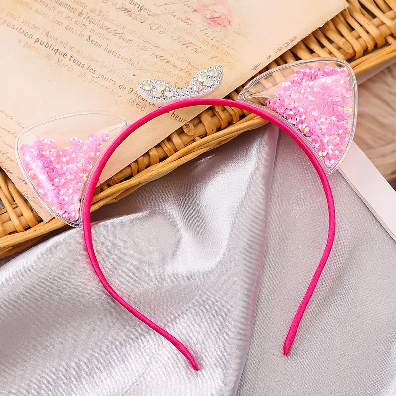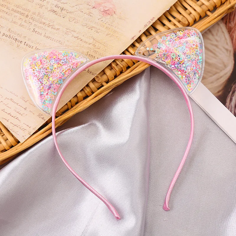 Ободок для волос с кошачьими ушками, ободок для волос с разноцветными блестками, аксессуар для волос