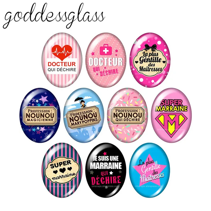 Французский NOUNOU супер marraine 10 шт, смешанные цвета, 13x1 8 мм18x2 5 мм30x40 мм Овальный фото стекло кабошон демо с плоской задней частью, украшения своими руками