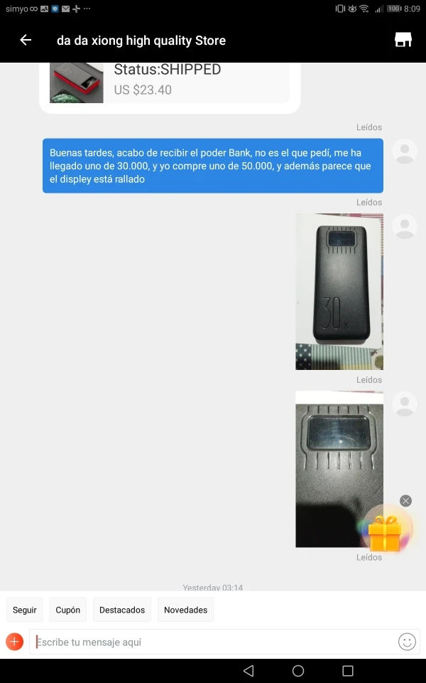 Купите один из 50,000, я получил 30,000 уведомление о продаже dor, и он говорит: «Да, мы отправили не ту модель», я хочу сказать, если я ничего не сказал вам, вы продаете мне один из 30,000 по цене одного из 50,000, если есть неправильная доставка, Дайте ему знать с первого часа. (Он пришел ко мне через два месяца), и я узнаю, отменю ли я, в коробке для доставки он кладет мне 50,000, попробуйте обсудить, потому что это четко выглядит так, как будто меня обманут, С этими ошибками, вот где вы его отрезали, мне пришлось открыть спор, и я принимаю.