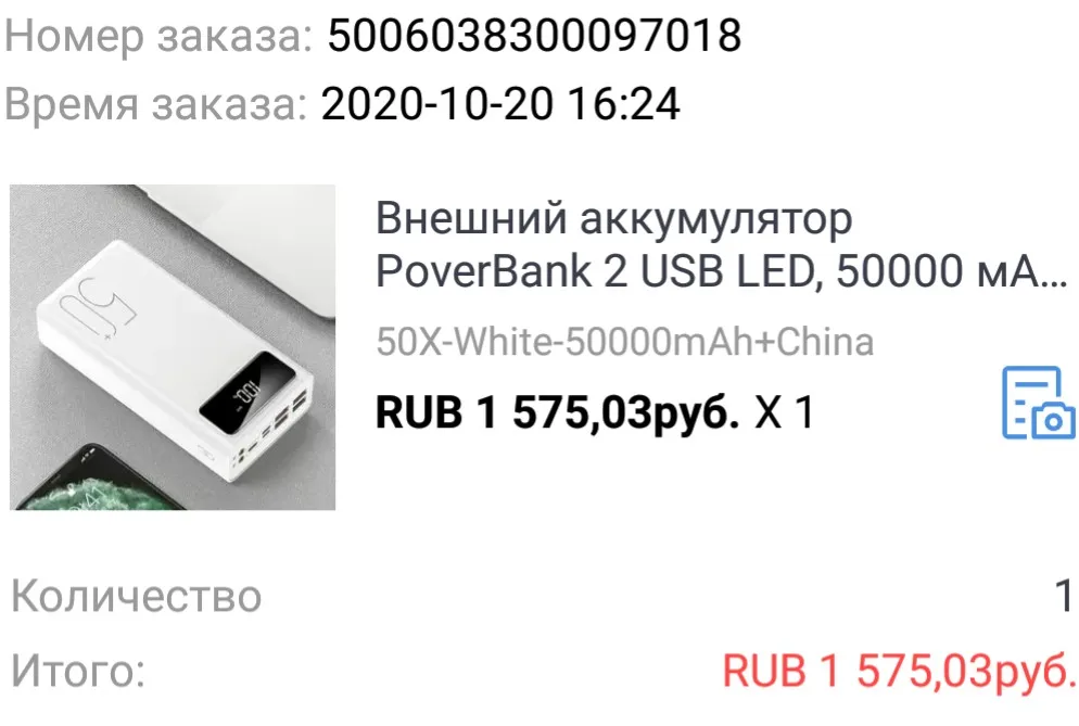 Страна: RU Color: 50X-White-50000mAh Ships From: China Доставка: ePacket 16.10.2020
