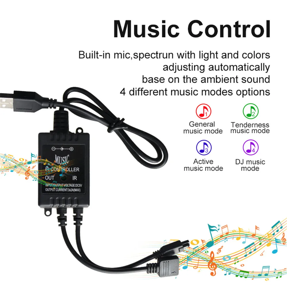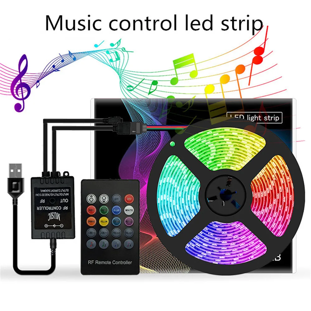 Музыкальная Светодиодная лента RGB, светящаяся лента USB 5 В, подсветка для телевизора, светящаяся водонепроницаемая гибкая неоновая лента smd 5050