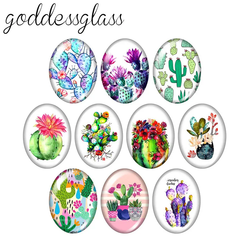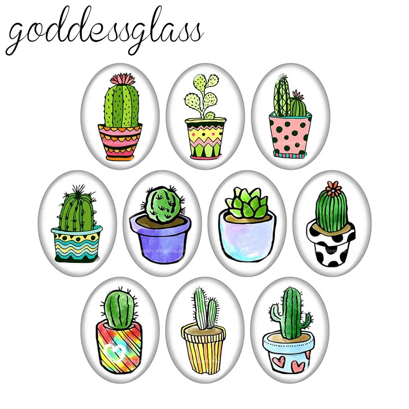 Новое Горшечное растение кактуса 10 шт. смешанный 13x1 8 мм18x2 5 мм30x40 мм Овальный фото стекло кабошон демонстрация Плоская задняя поверхность изготовление
