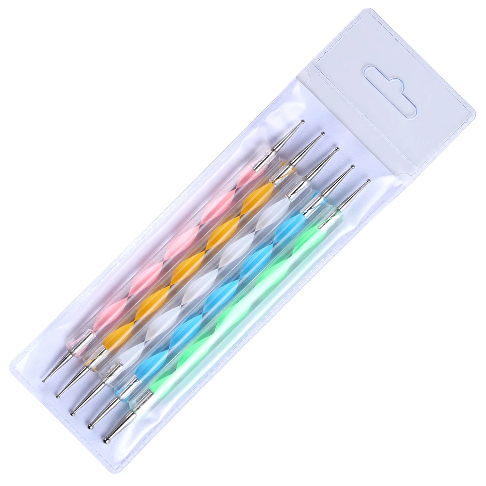 5 шт., профессиональная 2-сторонняя точечная ручка, инструмент для дизайна ногтей, набор ручек для УФ-геля, кисти для рисования ногтей инструмент для нанесения страз