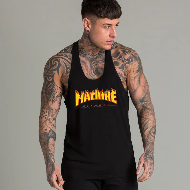 Бодибилдинг мужская летняя Фитнес Бодибилдинг майка мужская мода бр...