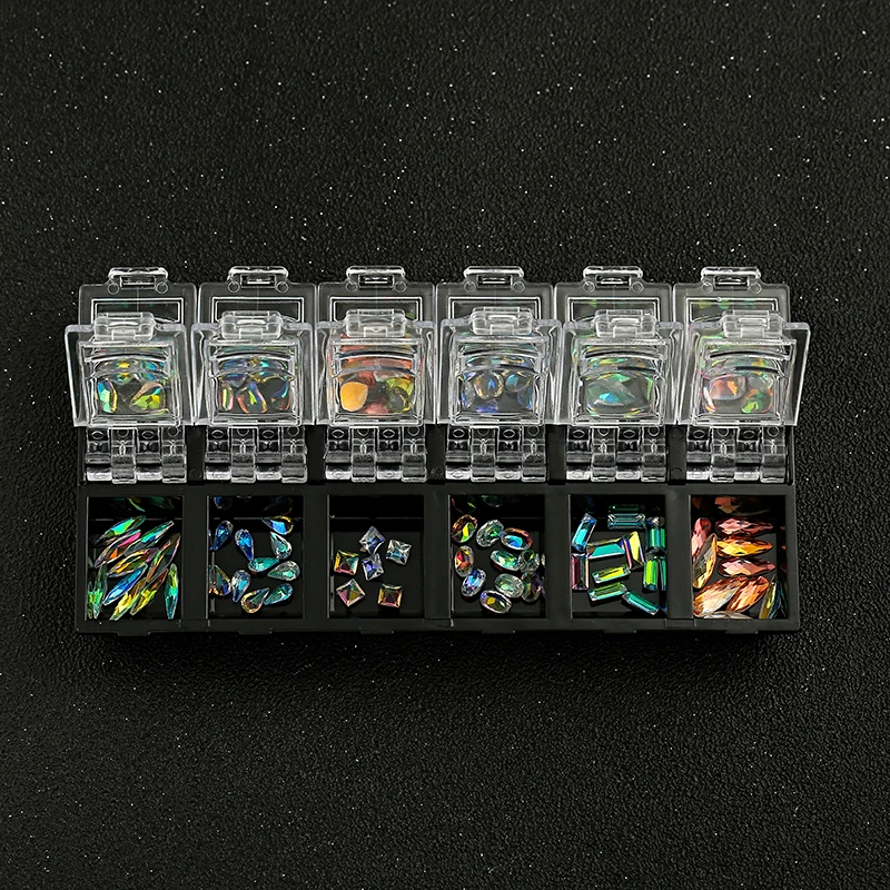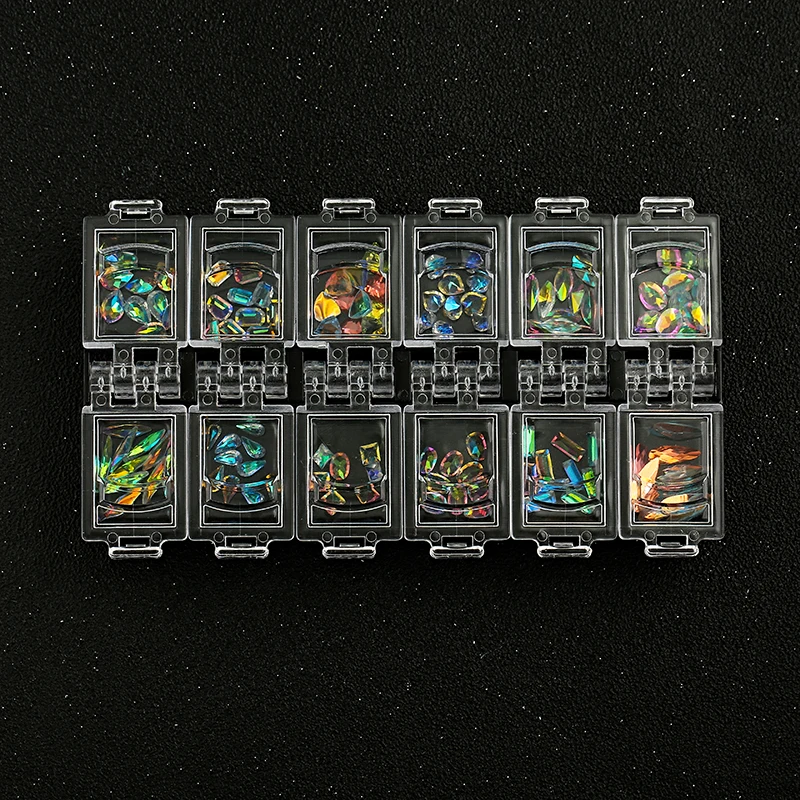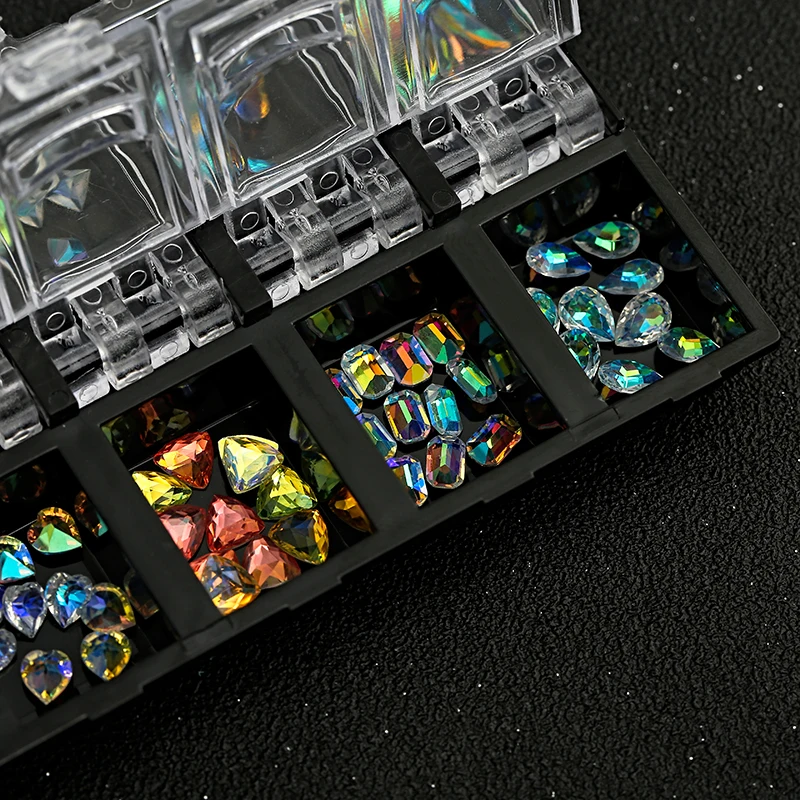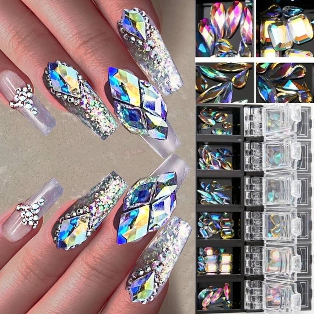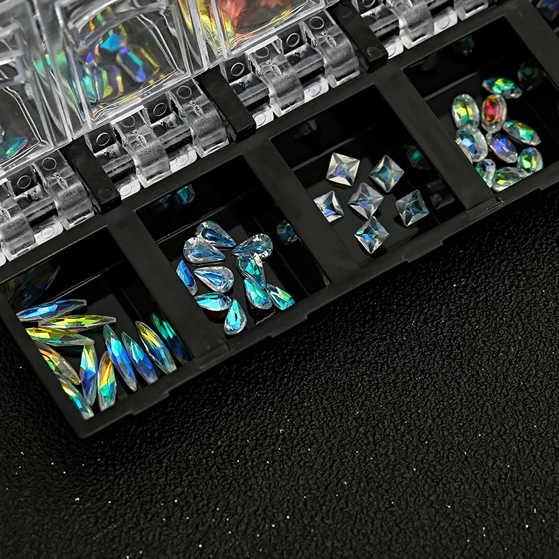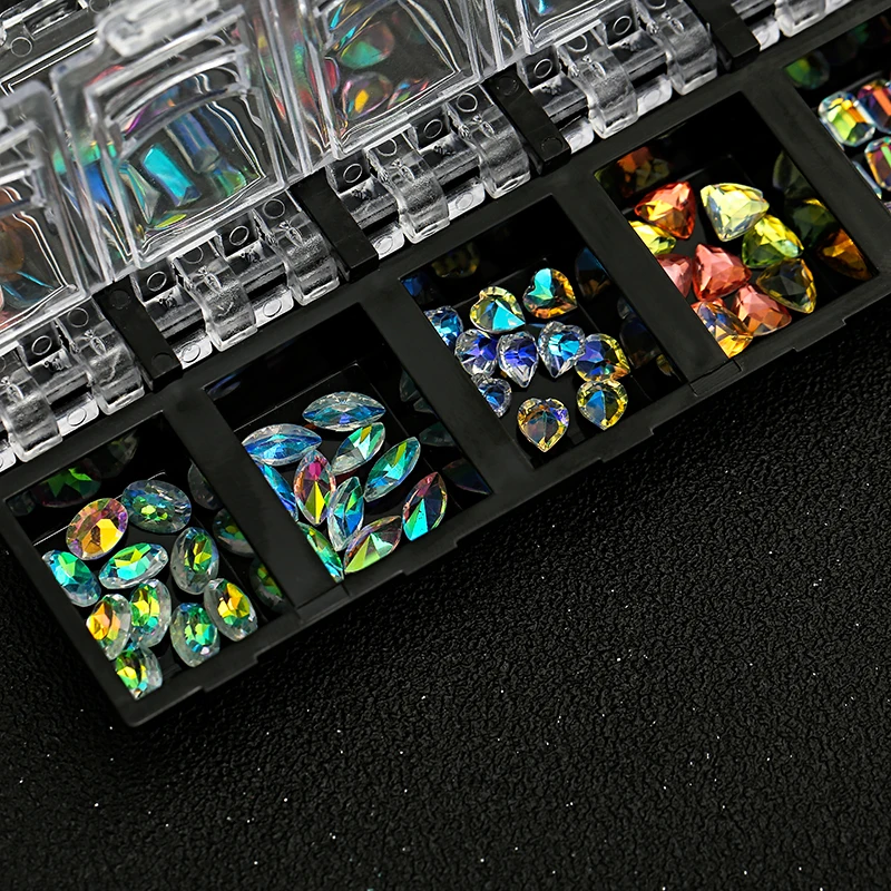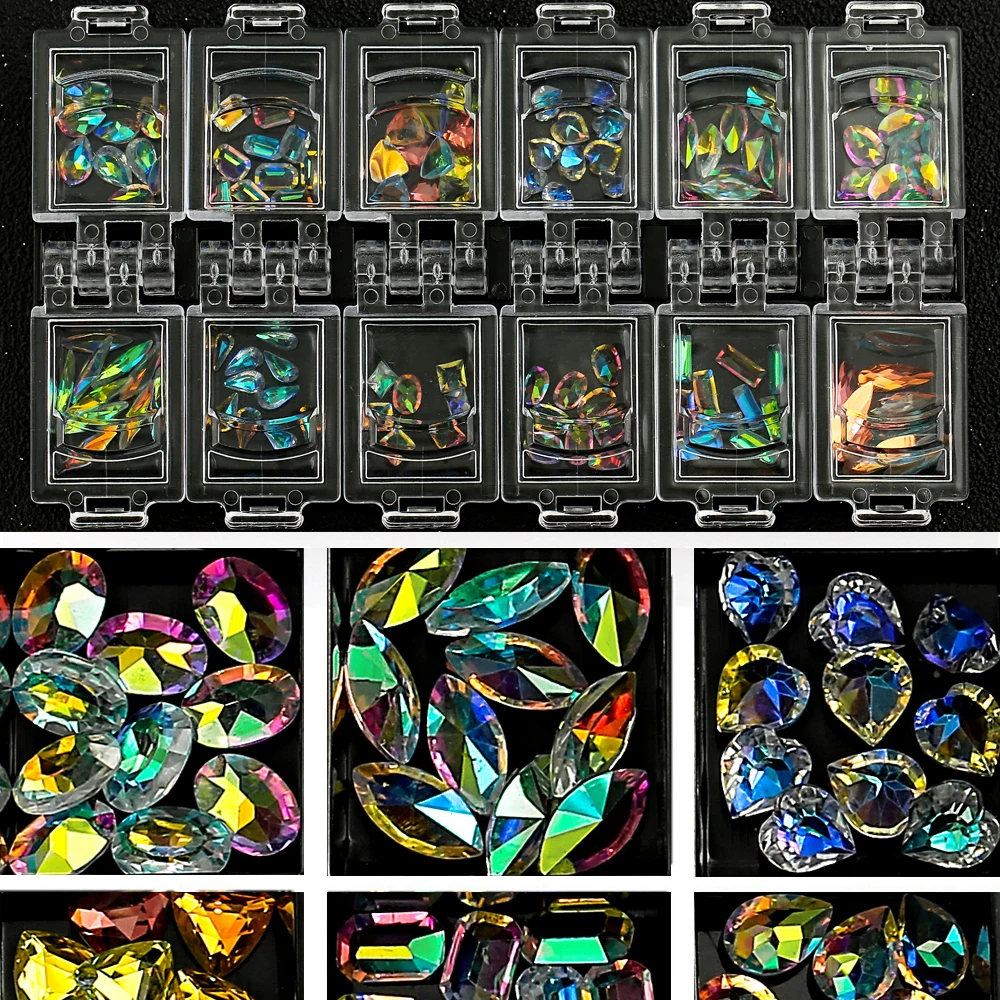 Стразы для ногтей, 3D AB, алмазные камни, блестящие, стеклянные, 12 коробокнабор, украшения для ногтевого дизайна, украшения для ногтей