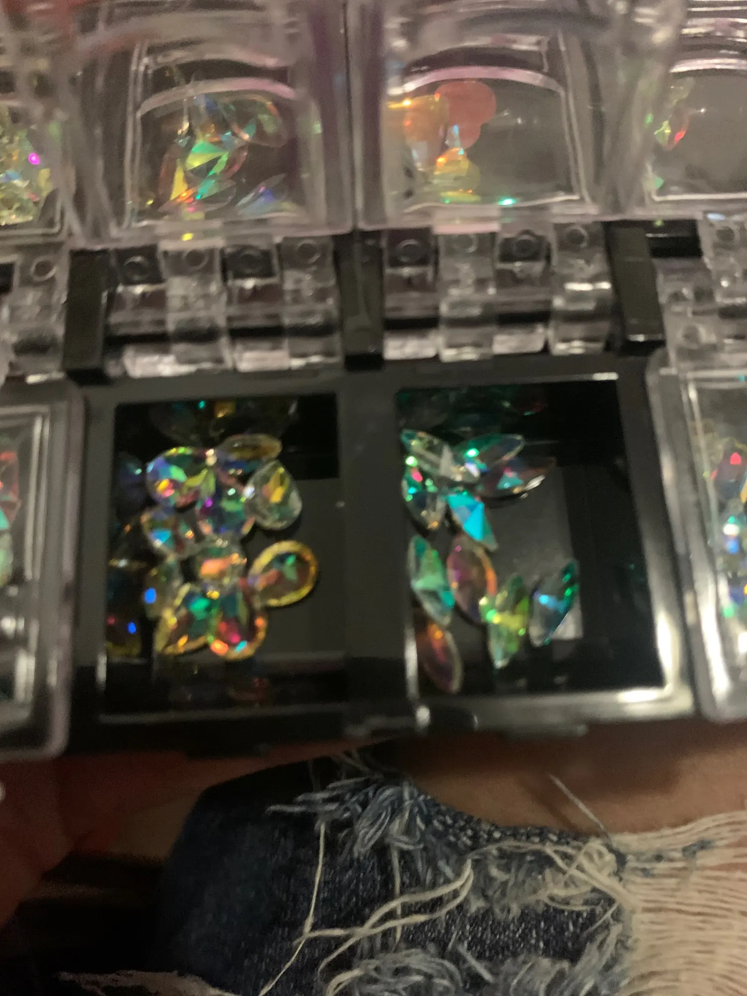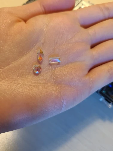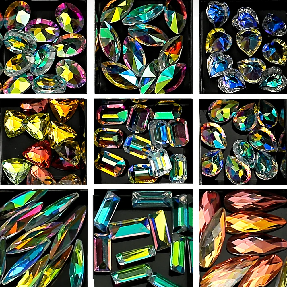these rhinestones are pretty much different than any other stone I have in my collection of nail art supplies the colors are these are really pretty some really neat shapes and the shine is really really intense very happy with my purchase
