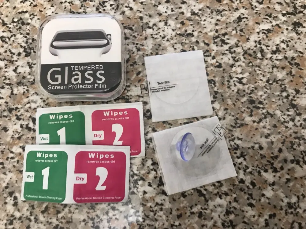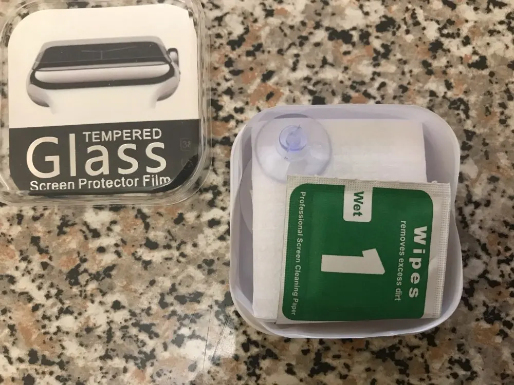 Пришло быстро. В коробочке все 4 заказанных стекла. присоска есть. К сожалению не было салфеток для очистки стекла часов.