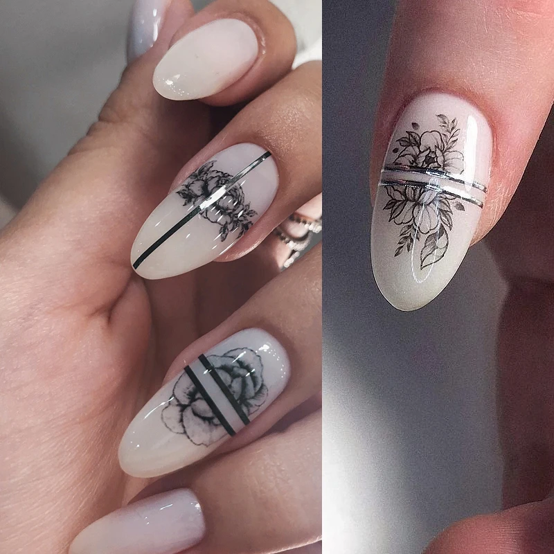 Наклейки большие. Подойдут для длинных ногтей. Доставка быстрая.