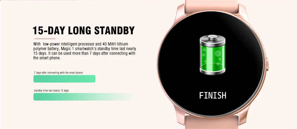 Благодаря маломощному интеллектуальному процессору и литий-полимерному аккумулятору емкостью 40 мАч, умные часы Magic 1 в режиме ожидания длятся почти 15 дней. Его можно использовать более 7 дней после подключения к смартфону