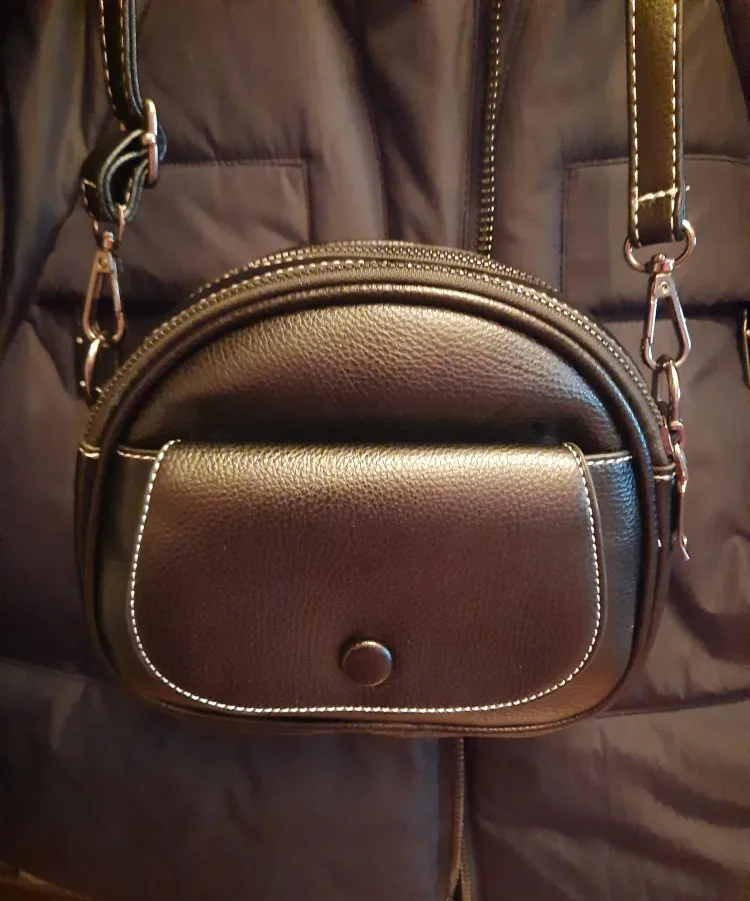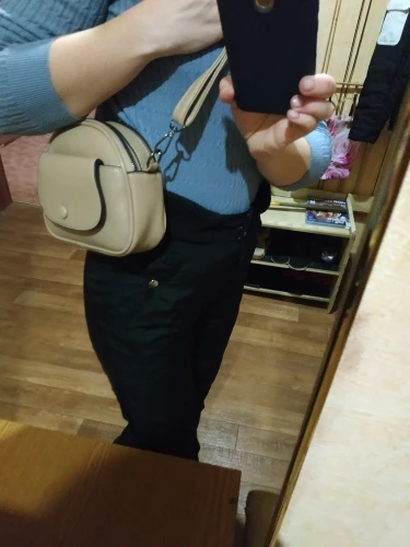 Маленькая,очаровательная и вместительная сумочка.Небольшой недостаток: короткий ремешок,но это мелочь.