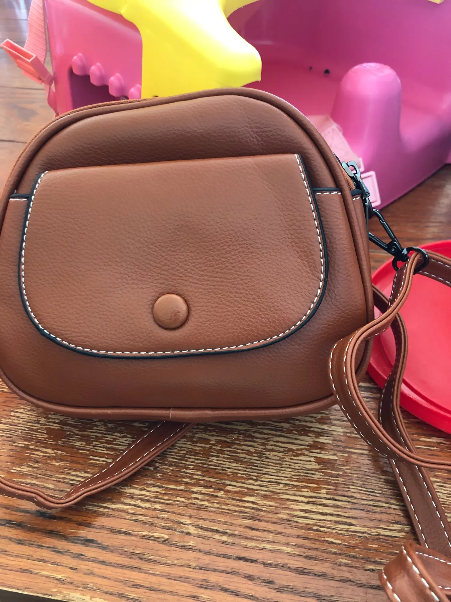 Милый, хорошее качество и очень маленький. Достаточно места для мужского кошелька, iPhone 7 + и очков для чтения. Нет места для помады или чего-либо другого.