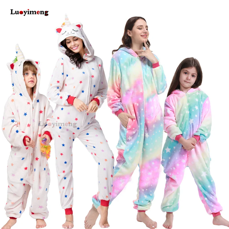 Новые пижамные комплекты в виде единорога кигуруми зимняя фланелева...
