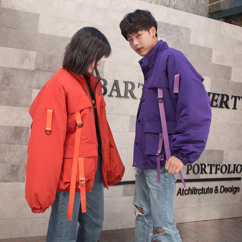 Куртка мужская зимняя, с лентами и карманами, в стиле хип-хоп, уличная, повседневная, ABZ522, 2021