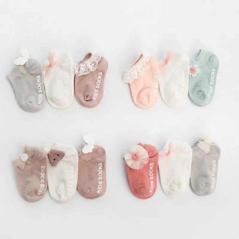 4 вида стилей 3 паруп. для маленьких девочек носки для девочек милые детские короткие носки под кроссовки из дышащего материала нижнее белье из мягкого хлопка, с кружевным бантом
