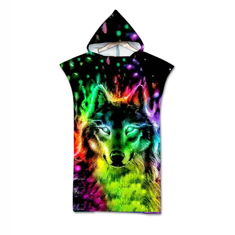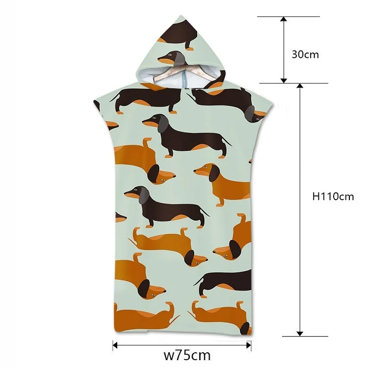 Пончо из микрофибры с капюшоном для серфинга, полотенце-накидка, Женский банный халат с принтом в виде собаки, взрослые мужчины, пляжная одежда