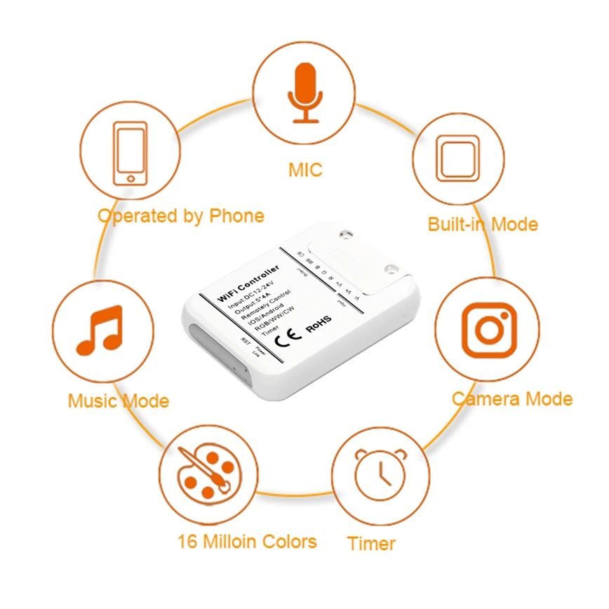 Светодиодная лента DC12-24V WIFI RGB CCT, управление музыкой, управление через приложение на смартфоне, Amazon Alexa Google Home, голосовое управление