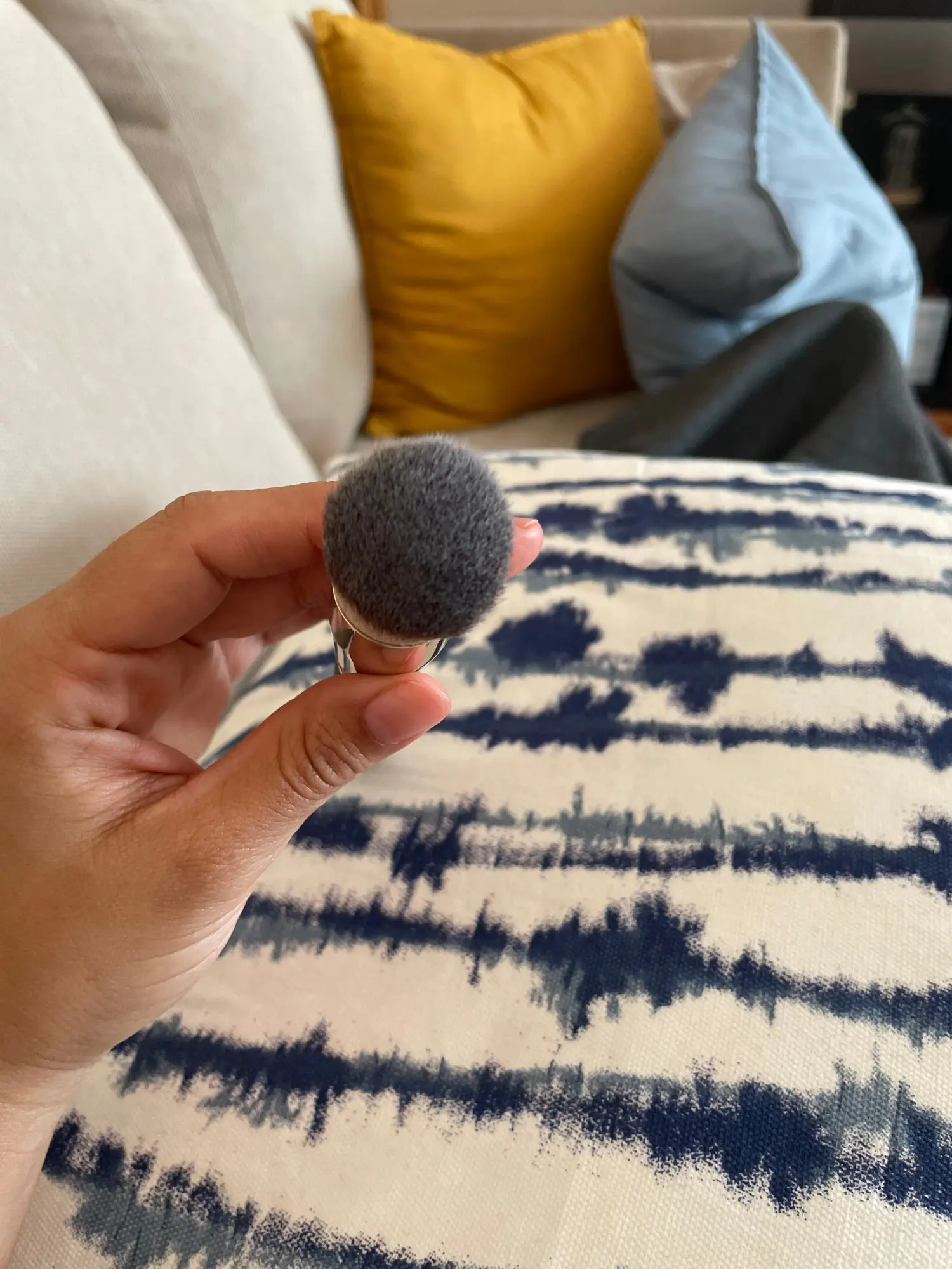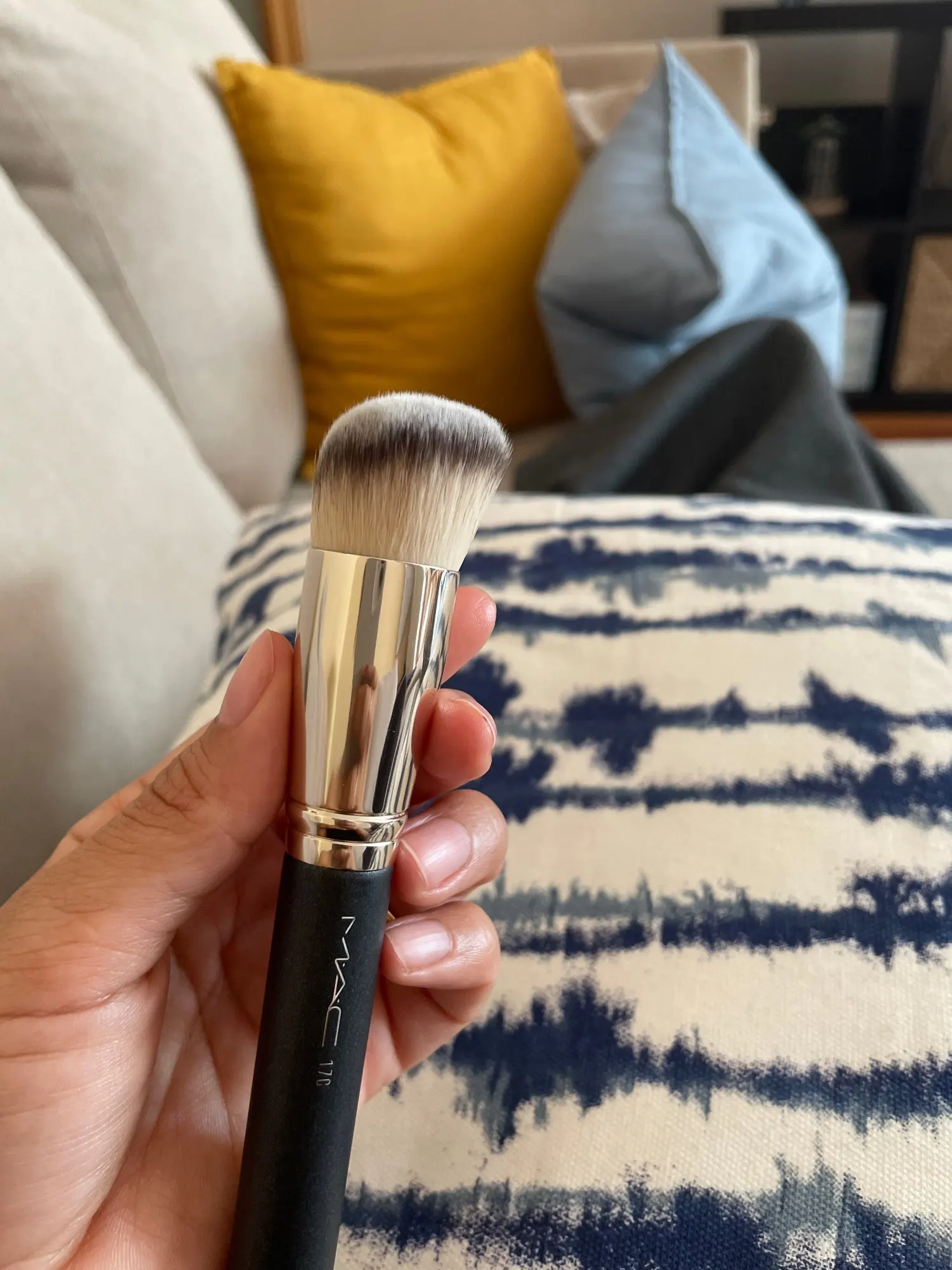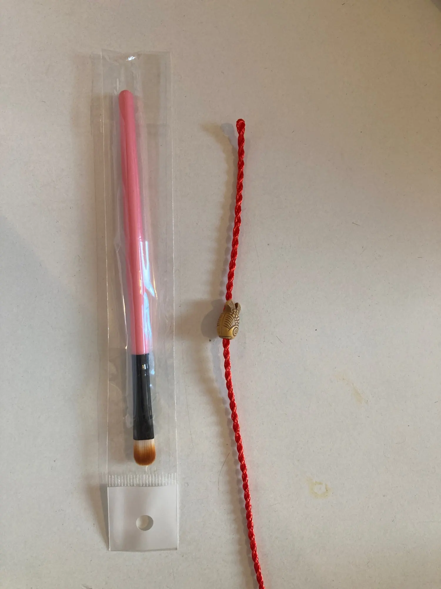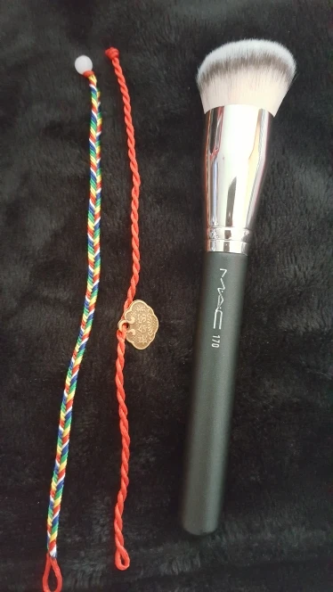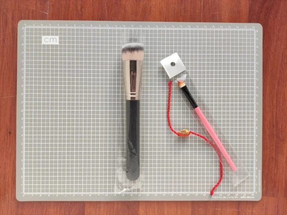 Tal y como se ve en fotos y como se indica en la descripción. Una brocha buenísima para aplicar base de maquillaje! El vendedor me envió de regalo un pincel para sombras de ojos y una pulserita de hilo muy mona! Muchas gracias!!!