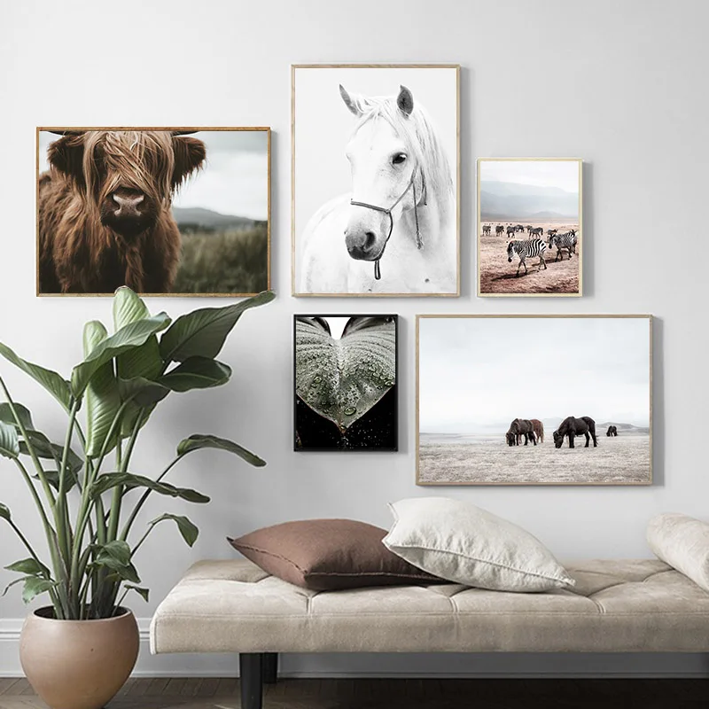 Плакат в скандинавском стиле с принтом овцы, лошади, крупного рогат...