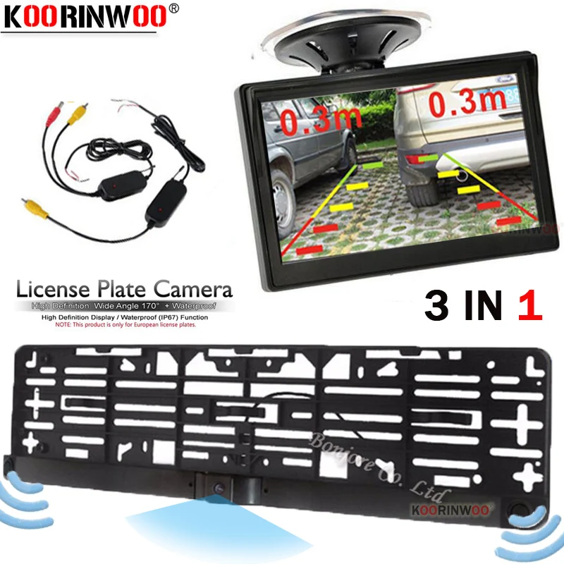 Универсальная рамка для номерного знака Koorinwoo, держатель для парковочной камеры, камера для багажника автомобиля с двумя датчиками парковки, монитор окна