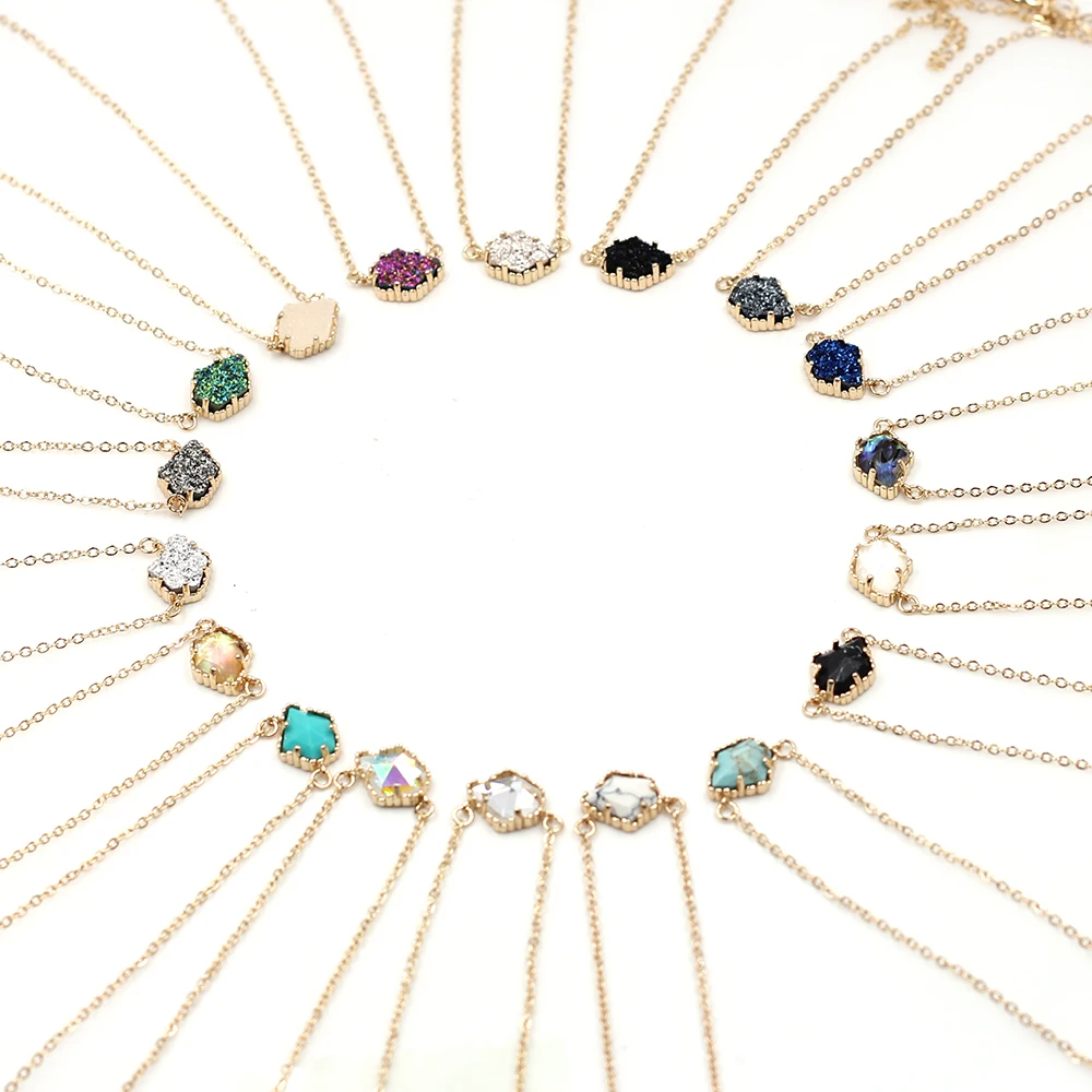 Новинка 2021, модное пятистороннее ожерелье с подвеской в виде пятиугольника из стекла, каучука, друза, Женское Ожерелье