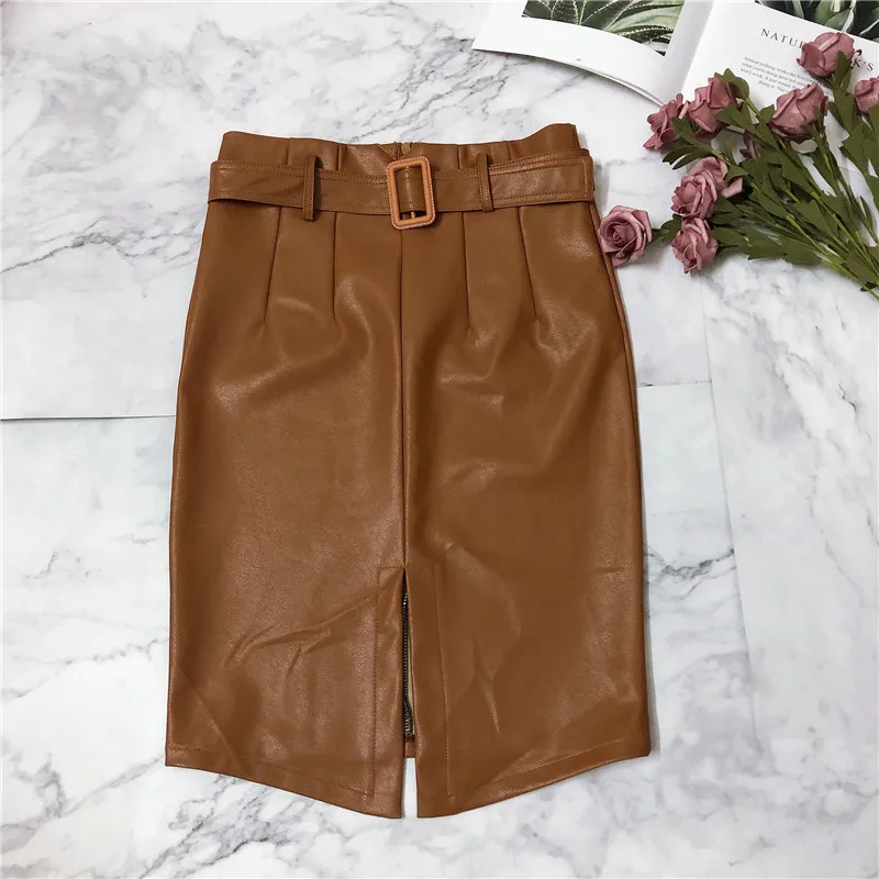 Юбка-карандаш средней длины из искусственной кожи, с высокой талией, Осень-зима, 2021