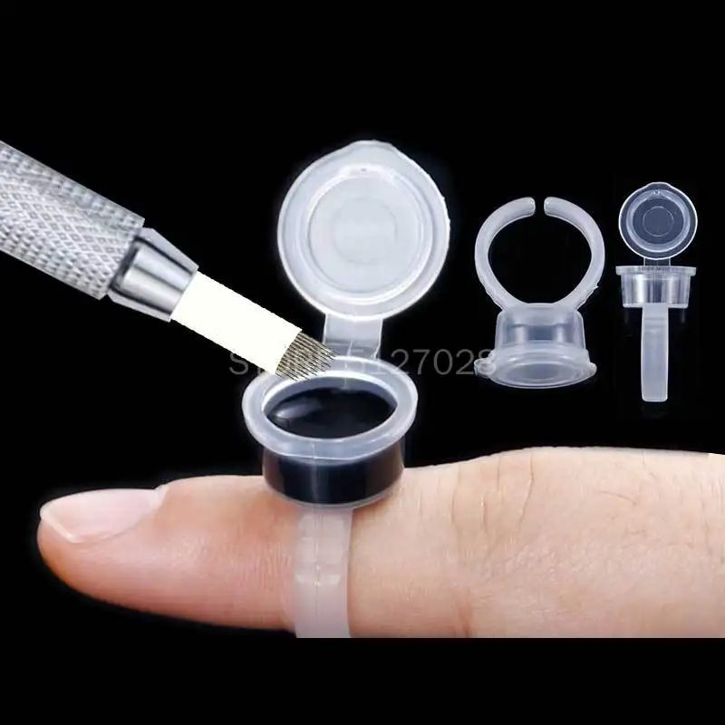 50 шт.лот Перманентный макияж инструменты для наращивания ресниц кольцо чашки с крышкой татуировки чернила оборудование микроблейдинг иголка для пигмента держатель