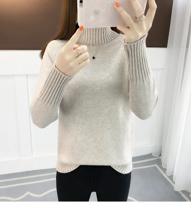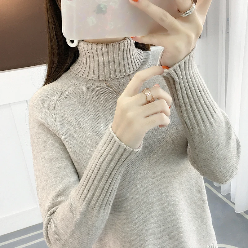 Свитер с высоким воротником, женские вязаные пуловеры с длинным рукавом, свитеры, Осень-зима 2021, женский свободный джемпер карамельных цветов, топы