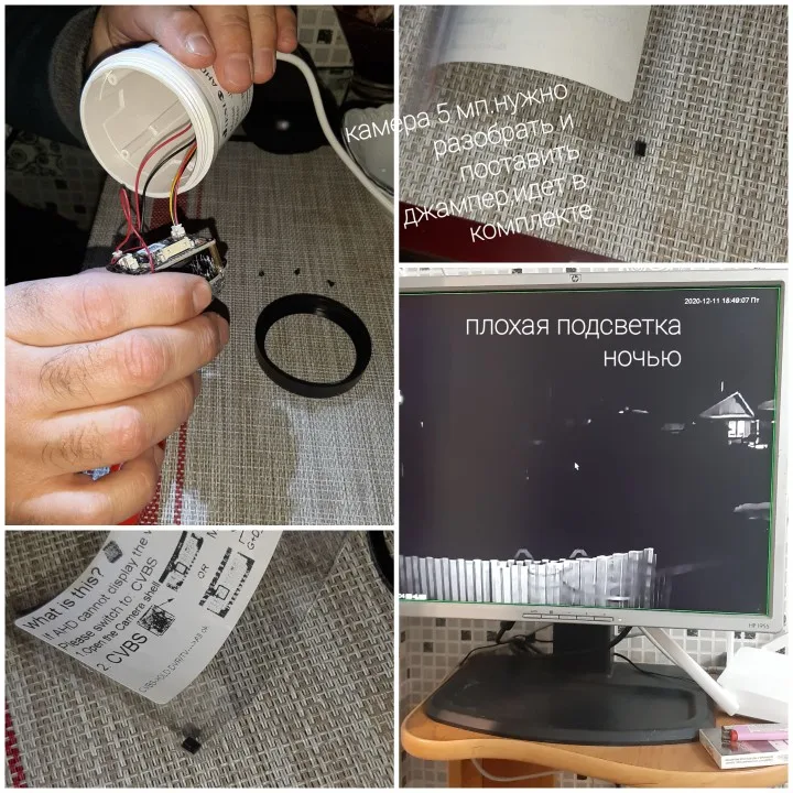 Камеры оказались слишком хорошими для регистратора (необходимо будет менять и регистратор тоже), пришлось снизить их качество (качество картинки), путём установки перемычки внутри камеры (в каждой коробке с камерой есть пакетик, на котором наклейка с картинкой, что перемыкать, а в пакетике джампер). В целом, камеры хорошие, с функцией ночной съемки.