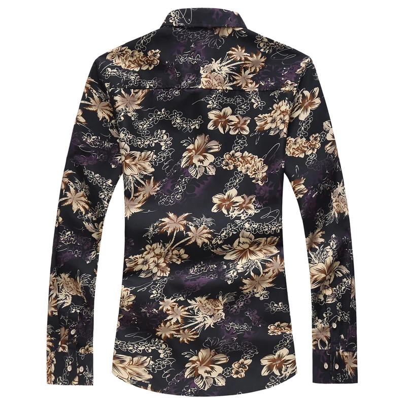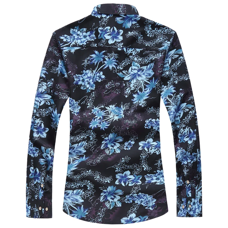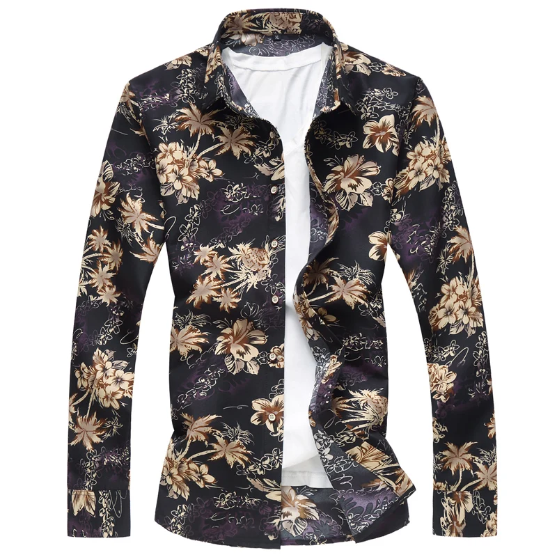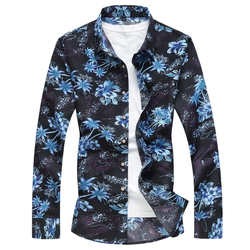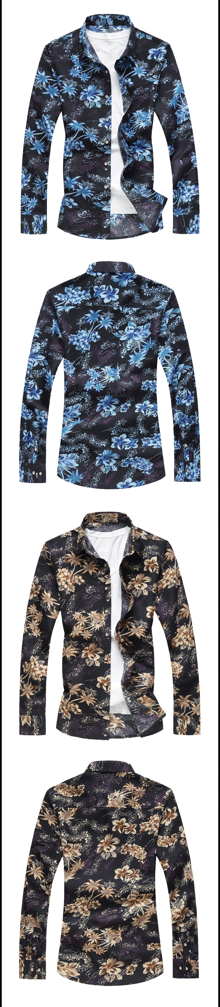 Весна-Осень 2019, модная мужская рубашка, облегающие рубашки с длинным рукавом и цветочным принтом, Мужская одежда, трендовые мужские повседневные рубашки с цветочным принтом, размеры