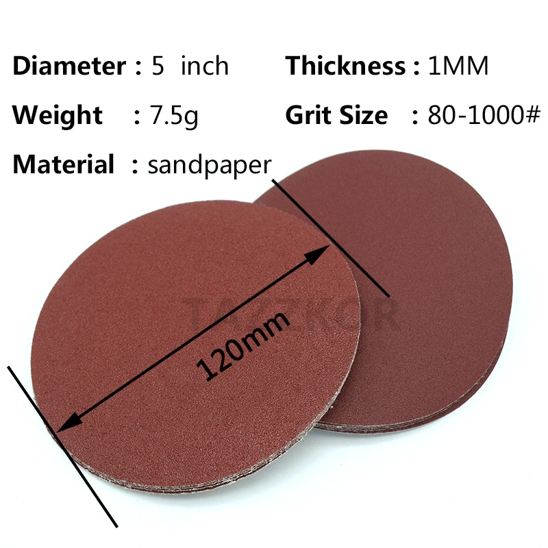 Круглый песочный бумажный зернистый самоклеящийся песочный бумажный шлифовальный диск абразивный камень для полировки стекла для деревообрабатывающего полировального инструмента 5 дюймов 10 шт