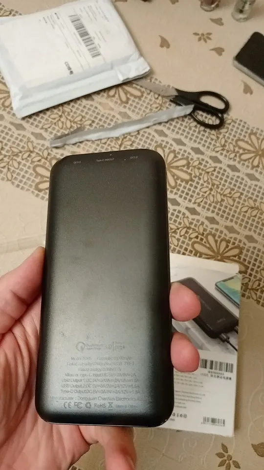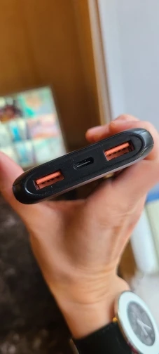 товар доставили меньше чем за неделю, курьер привез домой. внешний вид нравится. модель компактная по сравнению с предыдущими, которые у меня были га 10.000. заряжен процентов на 70 был при получении. покупкой доволен, продавца рекомендую