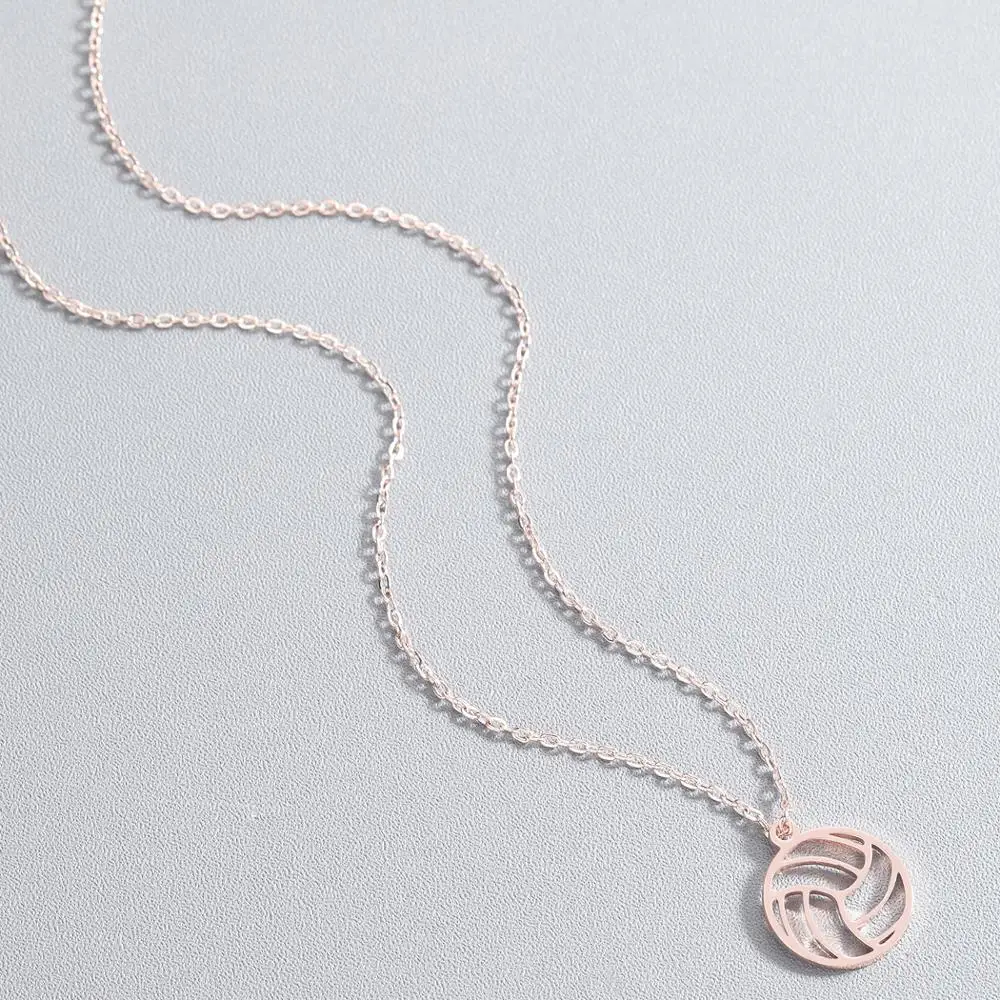 CHENGXUN кулон для волейбола, ожерелье, спортивные украшения, подвеска в виде спортивного волейбола с шариком, полый дизайн, розовое золото, спортивный веер