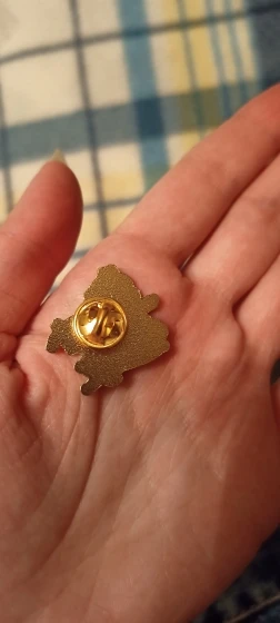 Посылка шла 1.5 месяца, но оно того стоило! Потрясающая по качеству брошь! Сзади надежное крепление из металла. Лицевая поверхность зеркальная, гладкая, нет ни заусенки, ни царапинки! Надпись сделана в углублении черной глазурью. Это теперь моя любимая брошка! Я в нее влюбилась, как увидела! Она вживую лучше, чем на фото! Спасибо продавцу! Упаковка была из пупырчатой пленки, посылку бросили в почтовый ящик.