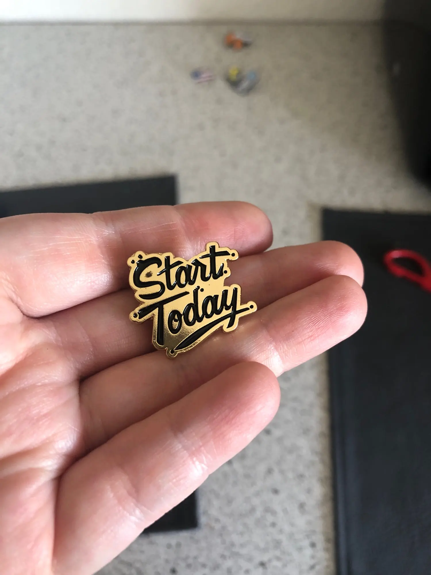 Брошь с эмалью, с надписью Начало сегодняшнего дня